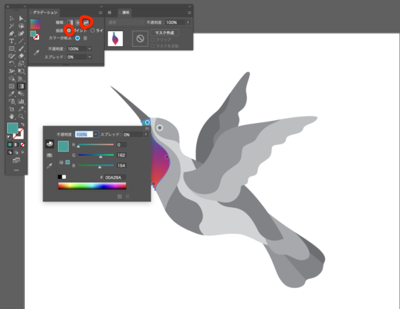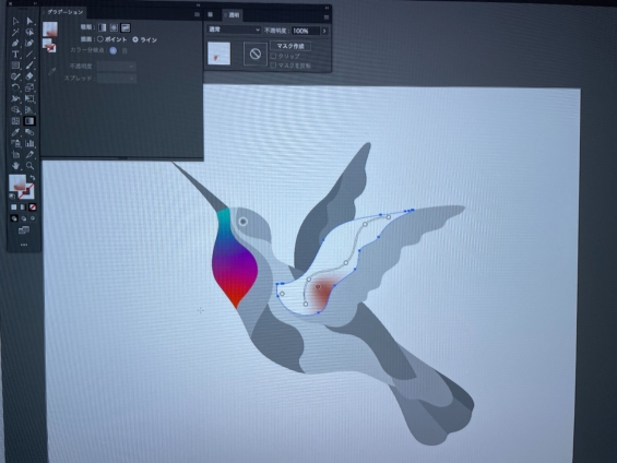 胸元と同じようにダイレクト選択ツールで羽を選択し、グラデーションツールをクリック。